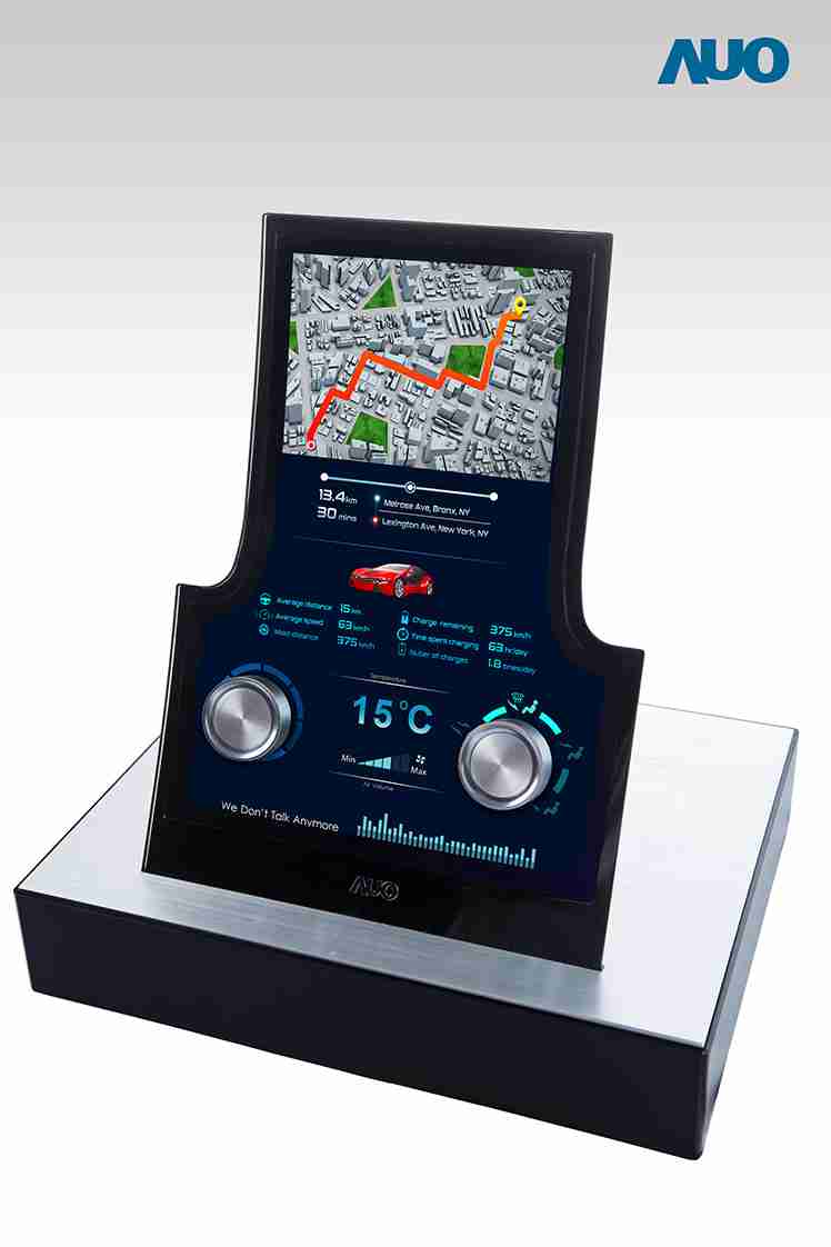 12.3 寸 Full HD LTPS 显示屏同样具备 1000 nits 高亮度,,,搭载内嵌式触控技术,,,整合驱动与触控 IC 于显示屏制程,,使显示屏厚度降低,,,,为中控台创造更多机构设计空间。。应用于抬头显示器的 3寸 LTPS 显示屏具有高穿透率、、、1200:1 高对比度度,,,以及 297 PPI 高画素密度。。。液晶最高可耐受到 110C 的高温 (TNI) 而不液化,,,在阳光高温下维持优异稳定的显示效果。。。