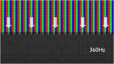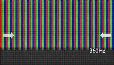 传统液晶驱动是从左到右单向进行,,在画面更新速度愈来越愈快的情况下,,位于驱动线路末端的右下角区域,,,画素的闸极来不及在短时间内获得足够电压,,无法显示出正确的颜色资讯。。。